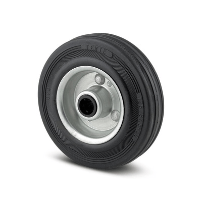 Jantă din tablă din oţel, ambutisată, suprafaţă de rulare din cauciuc plin negru, rulment cu role ace