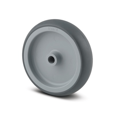 Jantă din polipropilenă, suprafaţă de rulare din cauciuc gri tip TENTEprene (cauciuc termoplastic), non-marking, rulment plan (bucşă antifricţiune)