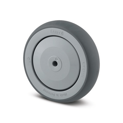 Jantă din polipropilenă, suprafaţă de rulare din cauciuc gri tip TENTEprene (cauciuc termoplastic), non-marking, apărător, rulment de precizie, cu apărători