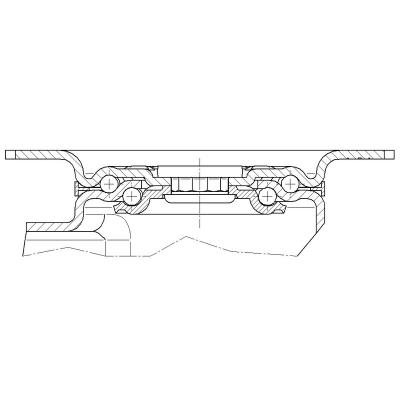 Roată pivotantă, Furcă din tablă din oţel, ambutisată, zincată, cap pivotant cu rulment pe două rânduri de bile, axul roţii cu şurub şi piuliţă, sistem de prindere tip placă. Jantă din tablă din oţel, ambutisată, suprafaţă de rulare din cauciuc plin negru, rulment cu role ace.
